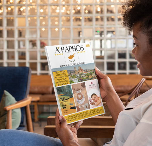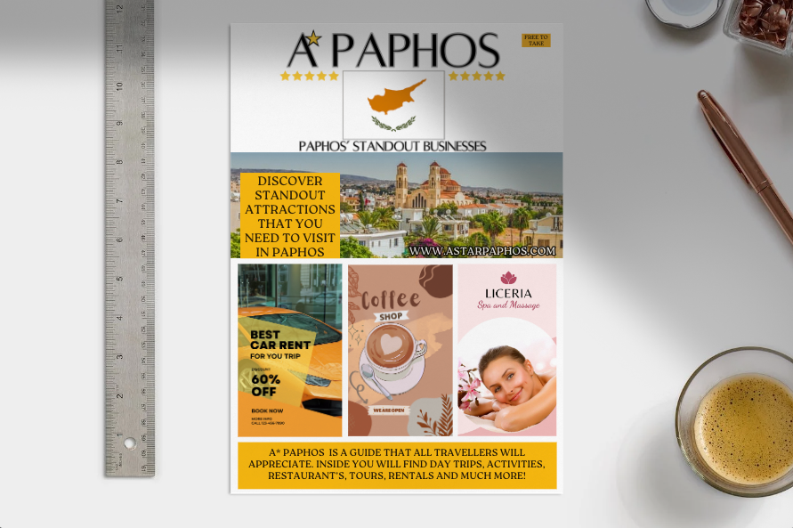 Welcome to A* Paphos. We are a marketing magazine aimed at tourists that can be found in hotels & high end Airbnbs all around the beautiful Paphos.