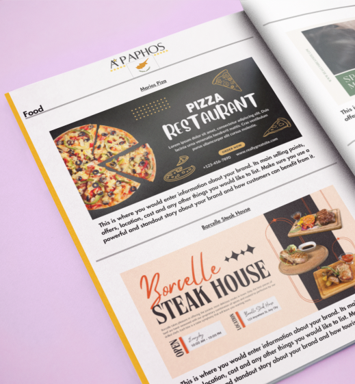 If you would like to advertise your business inside of A* Paphos, please head to the 'advertise with us' section or click the tab below. If you have no artwork for the magazine, we can help. Just ask!